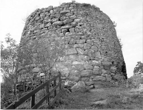 Nel centro di Armungia si trova il nuraghe, in posizione dominante, nelle vicinanze del vecchio municipio. Il buono stato di conservazione e la contemporanea posizione all’interno di un centro abitato ne fanno un caso forse unico. La tholos, di notevoli dimensioni, poggia su un basamento di pietre che funge da piattaforma e si erge ancora per un’altezza residua di 10 metri. Appena superato l’ingresso, ai lati del breve corridoio che conduce alla cella, si trovano due locali di guardia ricavati nello spessore dei muri. La cella forma un ampio locale di oltre 5 metri di diametro ed è provvista di due nicchie poste una di fronte all’altra. A circa tre metri di altezza si trova una apertura dalla quale parte una scala, ricavata all’interno dei muri, che conduce alla sommità della torre. Tale accesso veniva probabilmente raggiunto con una scala di legno o corda retrattile e aveva sicuramente scopi difensivi. Consentiva infatti ai difensori di opporsi, da una posizione dominante, ad una eventuale irruzione di nemici all’interno del nuraghe ed, allo stesso tempo, di raggiungere e mantenere il controllo della parte alta della fortificazione. E’ infatti la sommità della torre che rappresenta la parte più funzionale dal punto di vista militare dell’intero monumento.