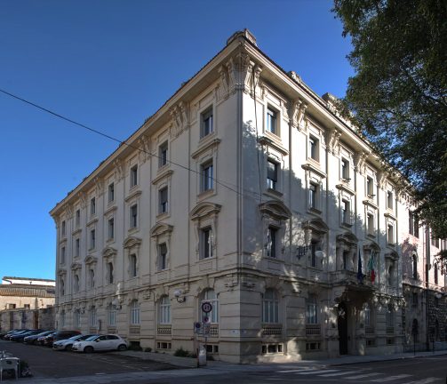 L’edificio che chiude il lato sud-occidentale di Piazza del Carmine fu realizzato tra il 1925 e il 1927 su progetto dell’architetto Augusto Valente per ospitare il Provveditorato alle Opere Pubbliche. La costruzione, caratterizzata da un linguaggio eclettico con richiami rinascimentali e manieristi, presenta un piano parzialmente seminterrato, un piano rialzato e tre livelli superiori. La facciata è scandita da finestre simmetriche decorate con cornici e timpani e culmina in un fastigio ornamentale che domina la piazza. Durante e dopo la Seconda guerra mondiale il Provveditorato e il Genio Civile ebbero un ruolo importante nella ricostruzione della città. Oggi l’edificio ospita il Tribunale Amministrativo Regionale per la Sardegna e la Rappresentanza di Governo nella Regione Sardegna, struttura che assicura il collegamento istituzionale tra lo Stato e il sistema delle autonomie locali. Tra gli ambienti più significativi si trovano le sale di rappresentanza del T.A.R., dove sono conservati quattro grandi dipinti realizzati tra il 1928 e il 1929 da Filippo Figari. Il ciclo pittorico – L’aia, La chiesa, La casa e Il villaggio – raffigura scene della vita quotidiana della Sardegna rurale, raccontate con grande attenzione ai gesti, agli abiti e alle tradizioni della società isolana del primo Novecento.